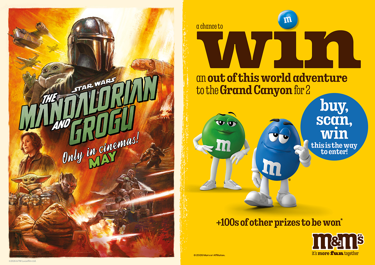 The result was a promotional campaign that combined cultural relevance with retail impact in ASDA stores. Pairing one of Star Wars’ most loved characters with the category-leading brand, M&Ms, to drive standout and engagement, all while promoting the STAR WARS: THE MANDALORIAN AND GROGU‘s upcoming film release.